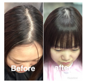 不純物除去し髪が綺麗なスッピン髪の状態にして水分補給と髪を傷みにくくする特別な処理をおこないます。なるべく髪に負担がかからないようにするためと髪質改善の効果を最大限発揮するための処理です。このとき、10数種類の栄養補給もおこなっていきます。
