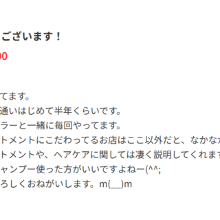 いつもお世話になってます。 と言いたいですが、通いはじめて半年くらいです。 トリートメントはカラーと一緒に毎回やってます。 東区周辺で、トリートメントにこだわってるお店はここ以外だ...